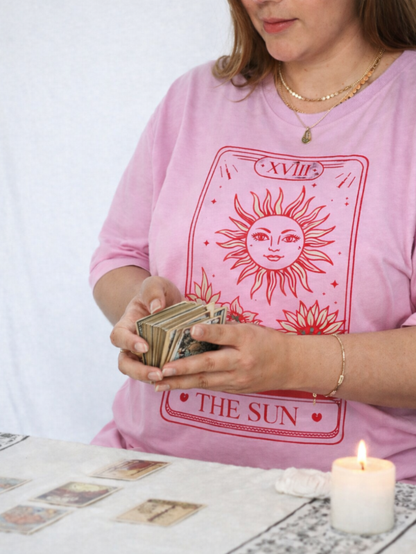 La serigrafía "The Sun", inspirada en el tarot, representa la energía vital, la claridad y la felicidad.