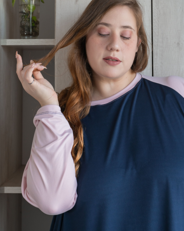 Combina estilo y comodidad a la hora de dormir con nuestro nuevo remerón, confeccionado en suave modal gamuzado que aporta una caída perfecta y un tacto aterciopelado. Su diseño de mangas ranglan realza los hombros y brinda mayor libertad de movimiento.