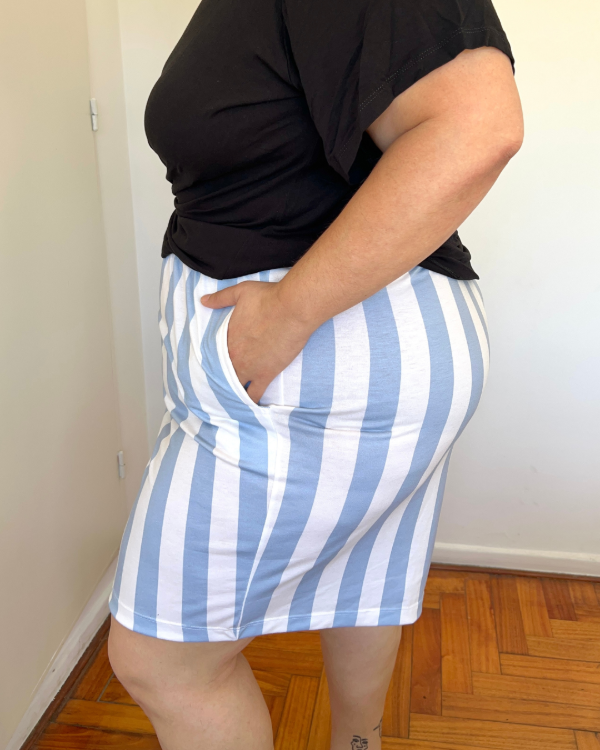 Referencia: Nuestra modelo tiene 155/160 de cadera y esta usando TALLE 4.